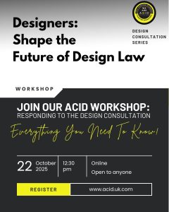 This is the webinar for you! Join Anti Copying In Design (ACID) and ACID Legal Affiliate Tony Catterall to learn about the intellectual property (IP) rights in your work and designs, how to protect them and what to do if you suspect you’ve been copied.