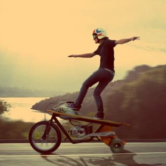 I guess the latest product is my FreeForma Surf Skate Bike, which is a Surf Skate motorbike design that you can actually ride. This was the latest tangible product I made. I originally drew the bike for a T-Shirt design and then I just had to make it!