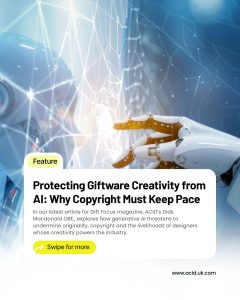 The best aspect is knowing that being a member of an organisation like ACID, I can get help and advice whenever I need it. I feel that my designs are safer, especially when displaying the ACID logo on my website, my business cards etc., because the deterrent message is so strong. I often weave my membership of ACID into conversations with potential clients as a subliminal warning shot, some of whom may think about copying my work. Sadly this has happened in the past!